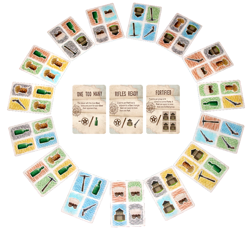Je probeert jouw gebiedskaarten op dusdanige wijze te plaatsen dat je zo groot mogelijke gebieden van gelijkgekleurde zones krijgt, want dit levert je punten op. In de situatie hierboven krijg je aan het einde van het spel bijvoorbeeld 6 punten voor de grootste woestijd (rood) en 3 punten voor de grootste vlakte (geel). Daarnaast probeer je de symbolen op de kaarten dusdanig te plaatsen dat ze zo goed mogelijk voldoen aan de doelen die in het begin van het spel opengelegd zijn. Als alle kaarten geplaatst zijn, dan tellen de spelers hun score op met behulp van het scoreblokje en wint de speler met de meeste punten.